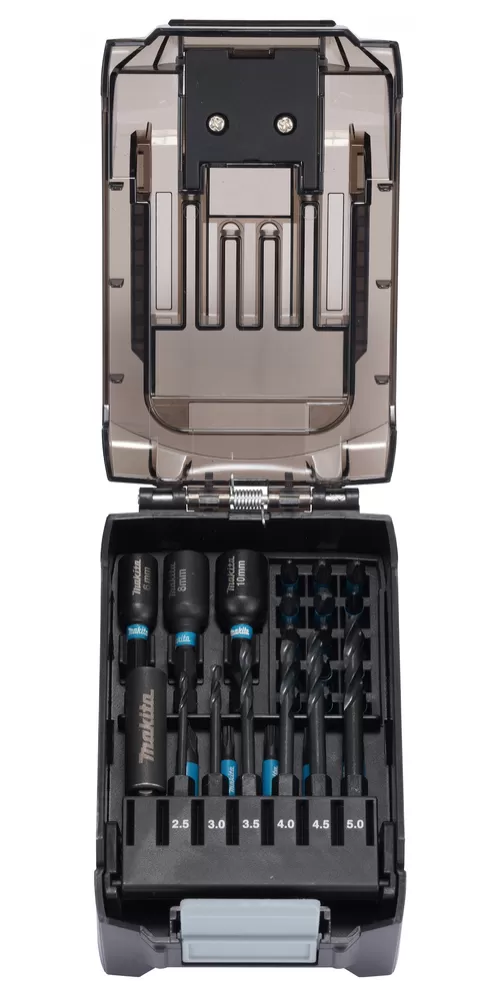 Sada torzních bitů IMPACT BLACK obsahuje bity 25 mm PH1, PH2 (3x), PH3, PZ1, PZ2 (3x), PZ3, T15, T20 (2x), T25 a T30, bity 50 mm PH2, PZ2, T15, T20, T25, T30, vrták HSS průměr 2.5, 3, 3.5, 4, 4.5 a 5 mm, nástrčné klíče 6, 8 a 10 mm a držák bitů 60 mm.