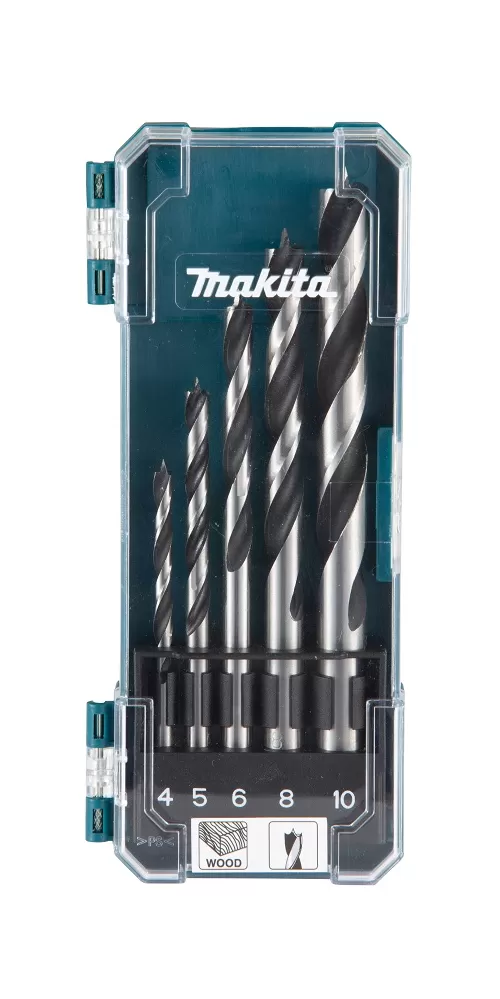 Sada vrtáků 5 ks do dřeva. Sada obsahuje vrtáku o průměru 4, 5, 6, 8 a 10 mm. Baleno v plastové krabičce. Celý popis